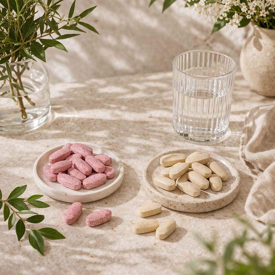 Opvallende waarden per twee tabletten: 400% van de aanbevolen dagelijkse hoeveelheid vitamine D, 313% vitamine C, 100% vitamine A en 93% ijzer. De vrouwenvariant bevat meer ijzer dan de mannenvariant (13 mg versus 6 mg) en meer foliumzuur (324 µg versus 174 µg), wat aansluit op de gemiddeld hogere behoefte van vrouwen aan deze stoffen.