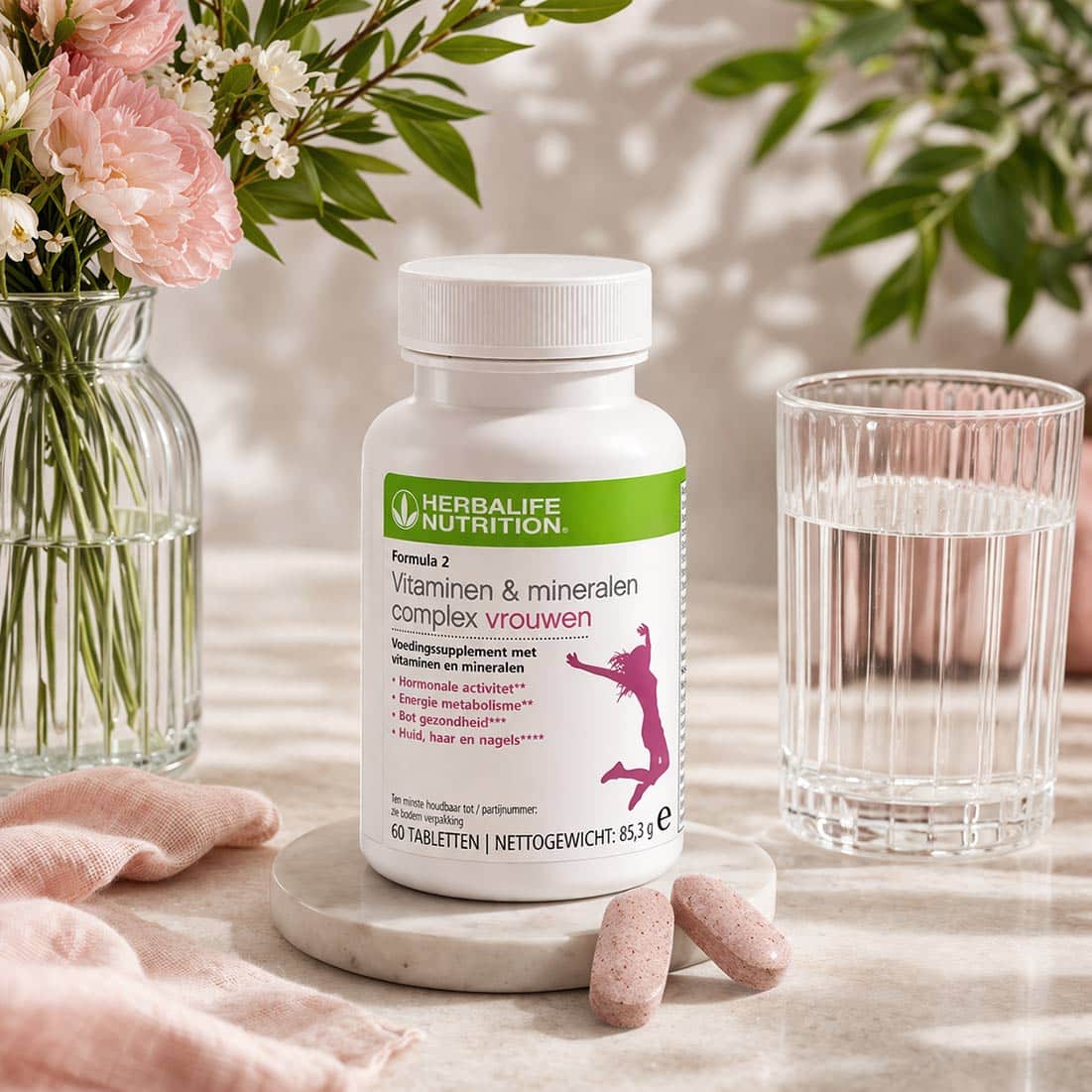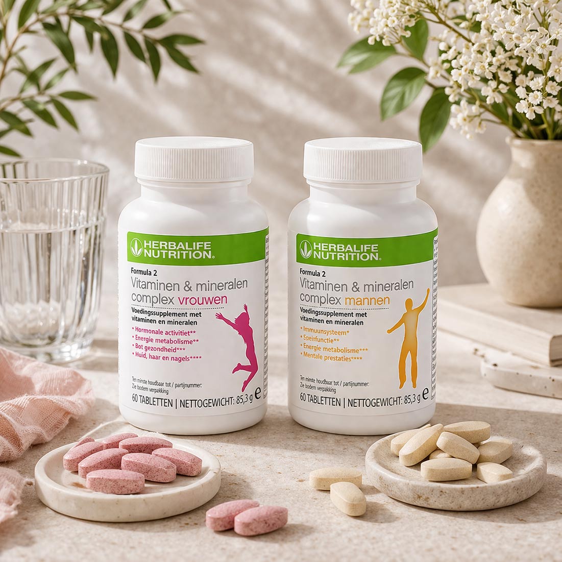 De vrouwenvariant levert 23 vitamines en mineralen per twee tabletten, waaronder vitamine B6 die bijdraagt aan de regulatie van hormonale activiteit, vitamine B12 die bijdraagt aan een normaal energieleverend metabolisme, calcium voor normale botten en zink voor het behoud van een normale huid, haar en nagels.