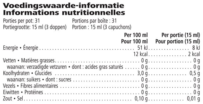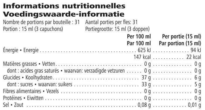 Schud goed voor gebruik. Meng 3 dopjes (15 ml) met 120 ml water. Voor een liter kant-en-klare drank meng je 120 ml concentraat met water in een literpot. Na opening koel bewaren en binnen 30 dagen gebruiken.