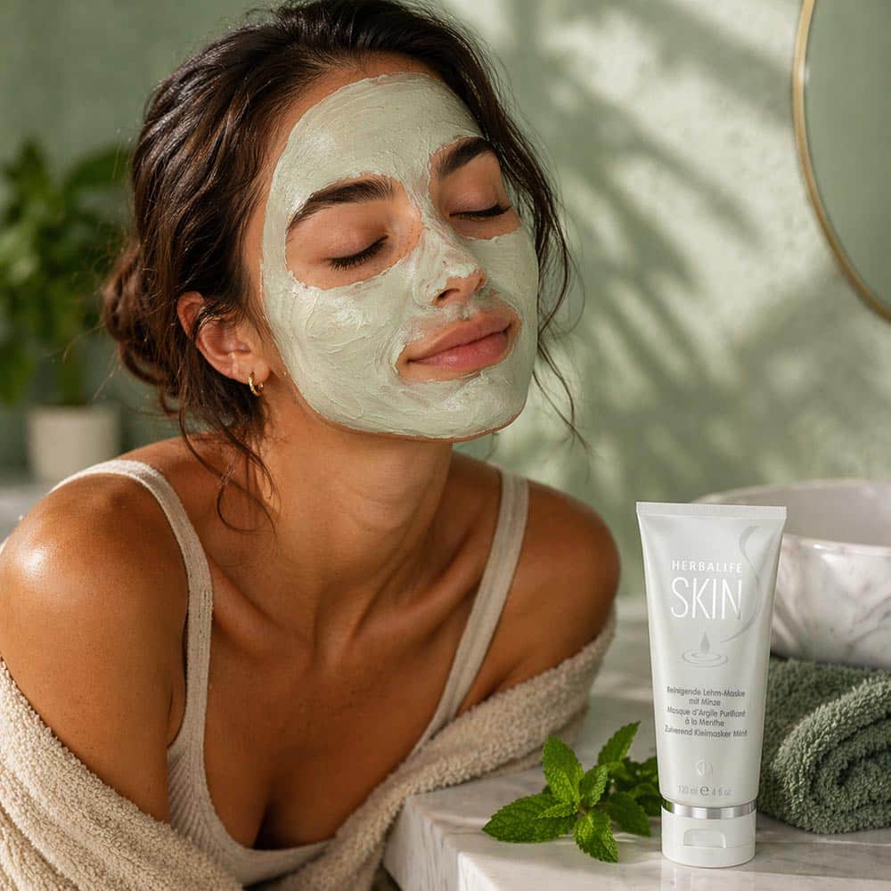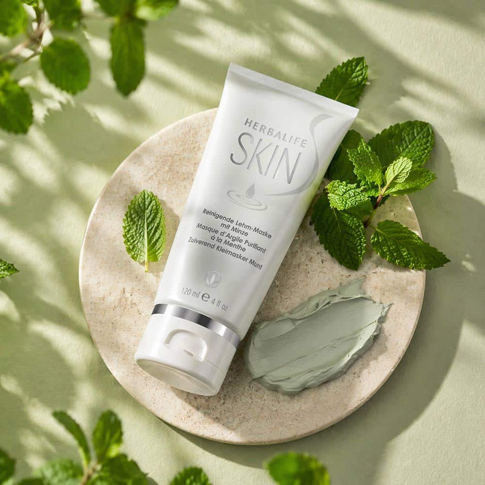 Een kleimasker voor één tot drie keer per week. De Zuiverend Munt Kleimasker van Herbalife SKIN werkt met bentonietklei, die vuil en overtollig talg absorbeert. De formule bevat ook niacinamide (B3), vitamine C en E en extracten van kamille, rozemarijn en groene munt.