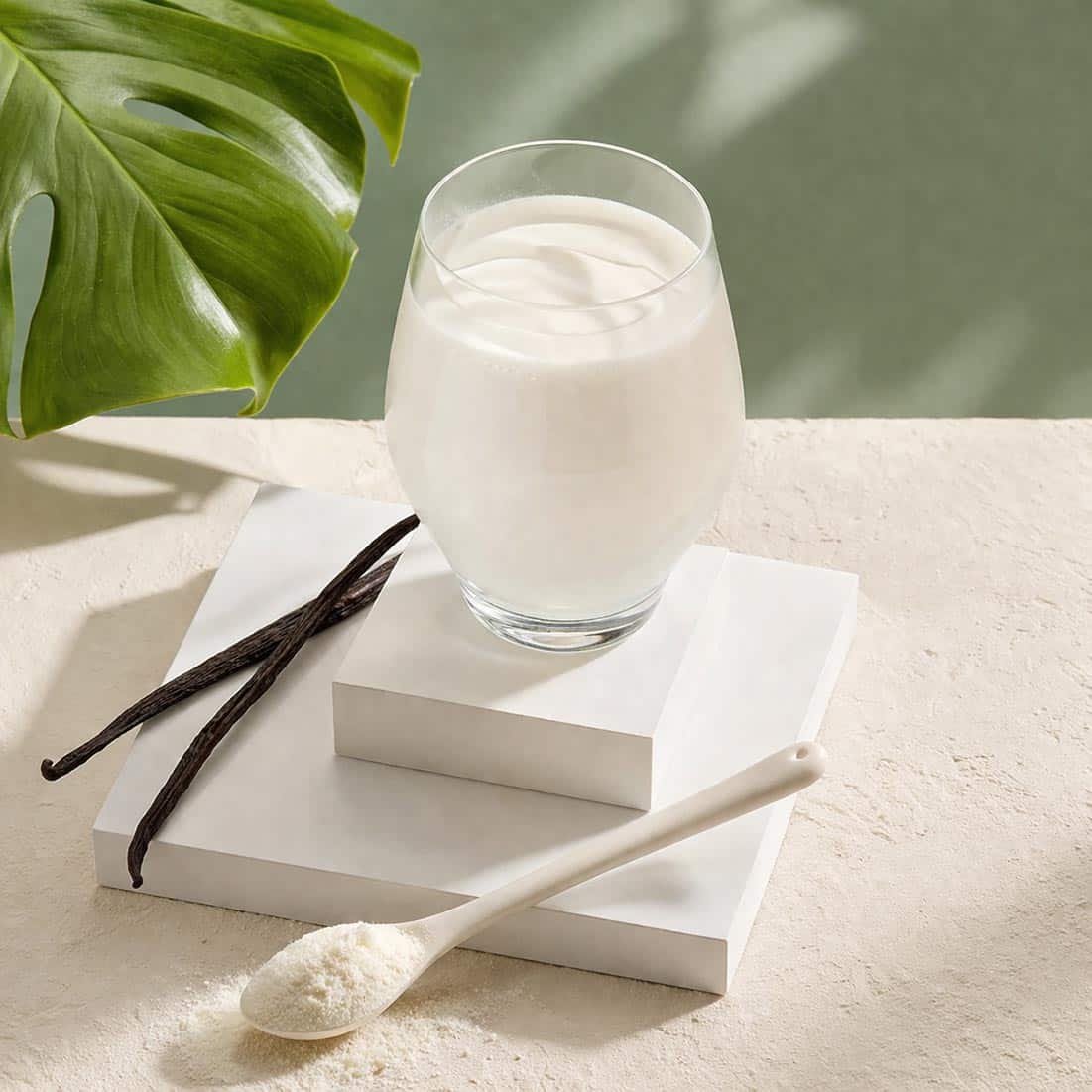 Galactooligosaccharidenpoeder (galactooligosacchariden (melk), lactose (melk), glucose (melk), galactose (melk)), maltodextrine, Lactobacillus helveticus R52, Bifidobacterium lactis HN019, aroma, antiklontermiddel (siliciumdioxide).